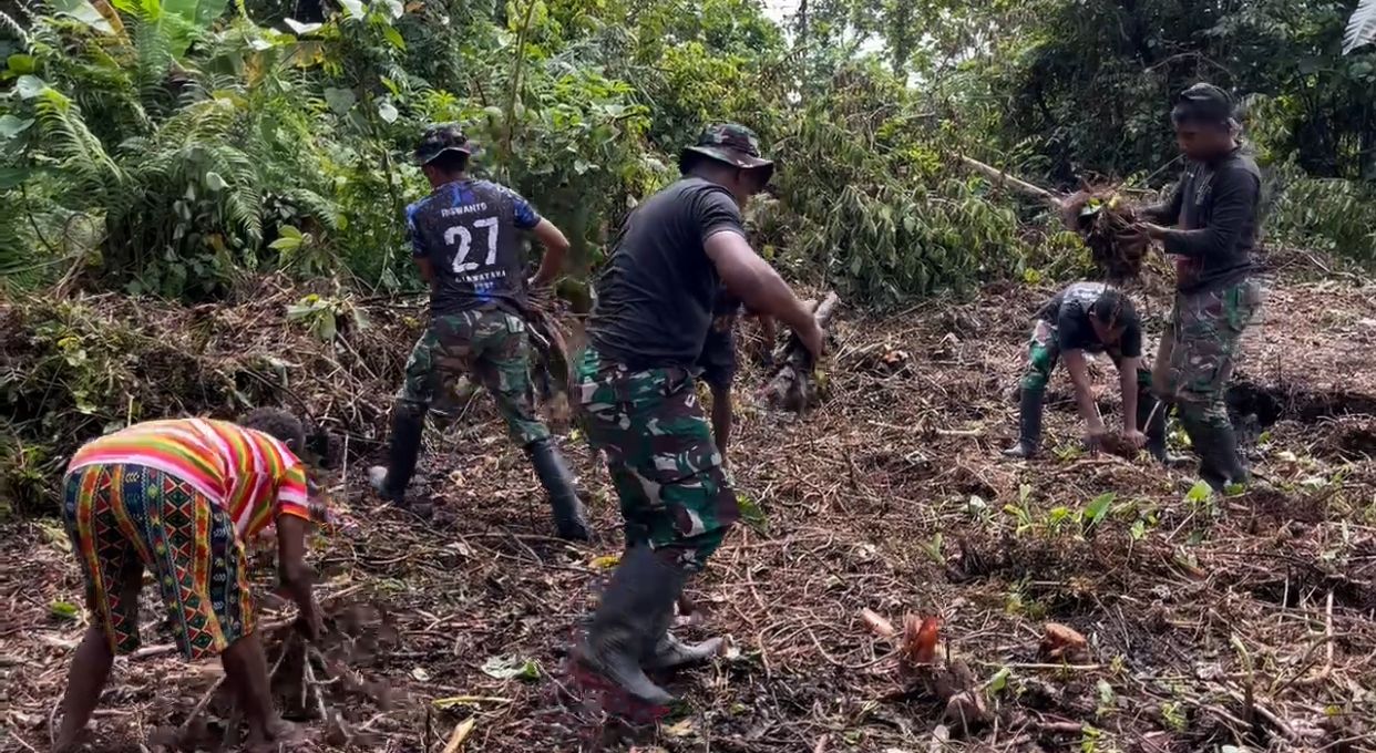 LCN – Kampung Beringin, Pegunungan Bintang, Pos Selal Satgas Pamtas RI–PNG Yonif 751/Vira Jaya Sakti (VJS) bersama masyarakat Kampung Beringin melaksanakan pembersihan lahan dan penanaman jagung sebagai wujud dukungan terhadap program ketahanan pangan Presiden RI. Kegiatan gotong royong ini diarahkan untuk memperkuat ketersediaan pangan keluarga, mengurangi ketergantungan pasokan luar, serta mendorong kemandirian ekonomi warga diwilayah perbatasan, Rabu,10/12/2025.