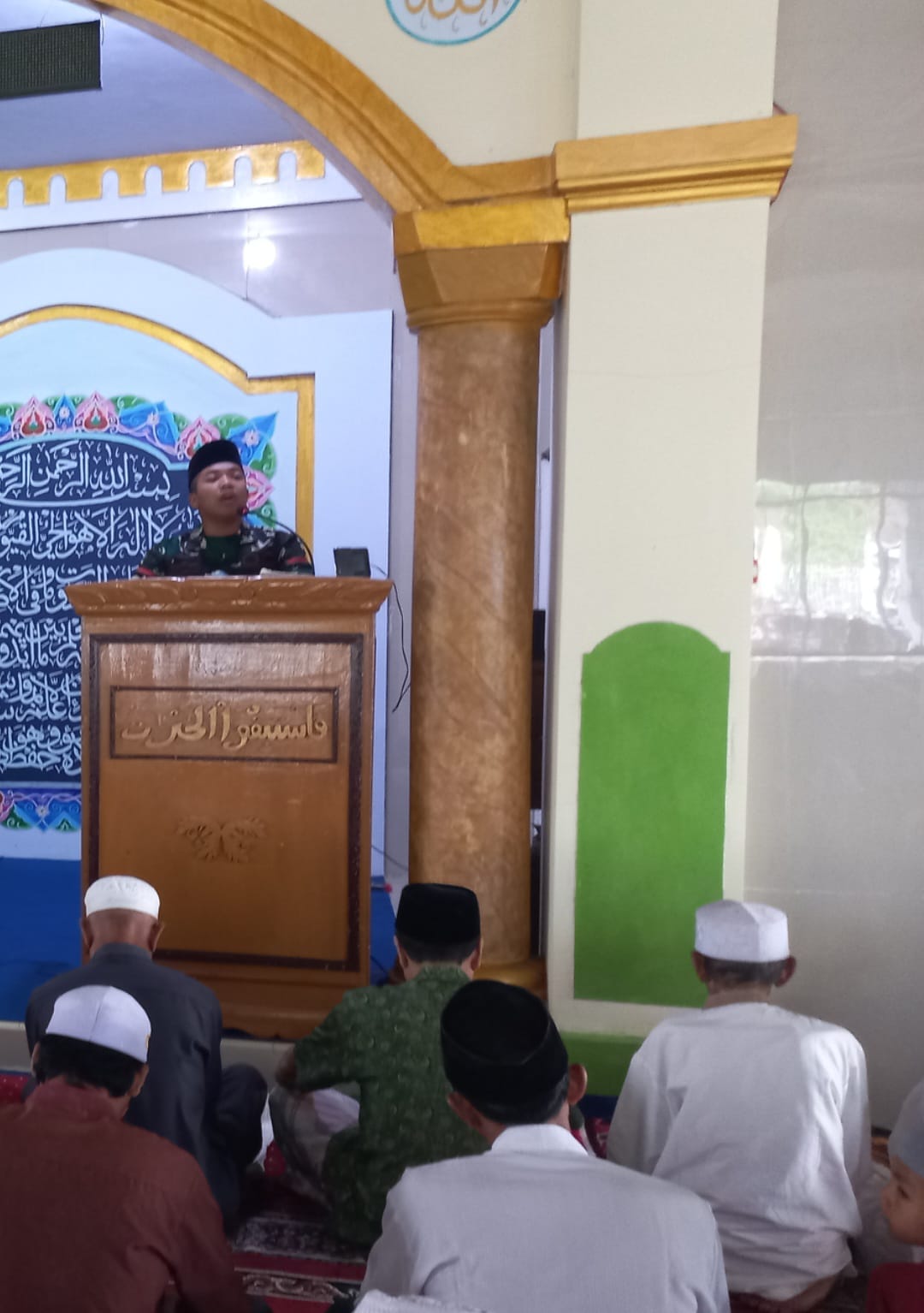 Kehadiran seorang prajurit TNI sebagai pembawa khotbah memberikan suasana berbeda dan menambah kekhusyukan ibadah seluruh jemaah.