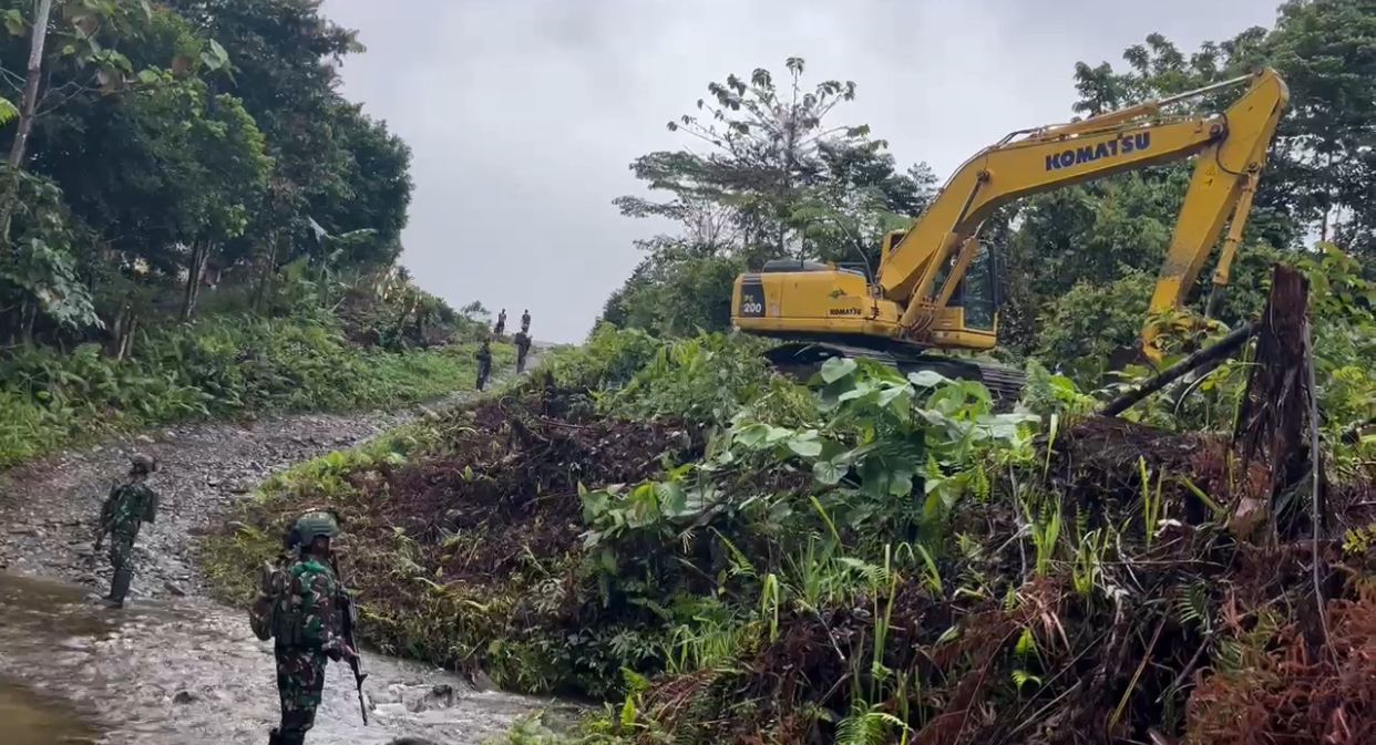 Prajurit Pos Selal Amankan Pembersihan Jalur Iwur–Oksibil, Cegah Potensi Kecelakaan