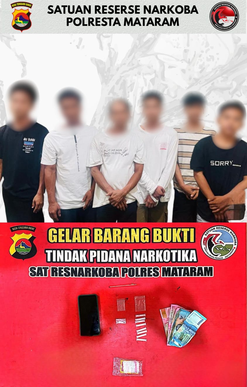 Masih kata I Gusti, ​Enam laki – laki yang diamankan masing-masing berinisial RL, R, DS, AD, JHS, dan HY. Saat ini, mereka semua mendekam di Mapolresta Mataram untuk dikuliti perannya masing-masing. Apakah mereka hanya pengguna, atau bagian dari sindikat pengedar.