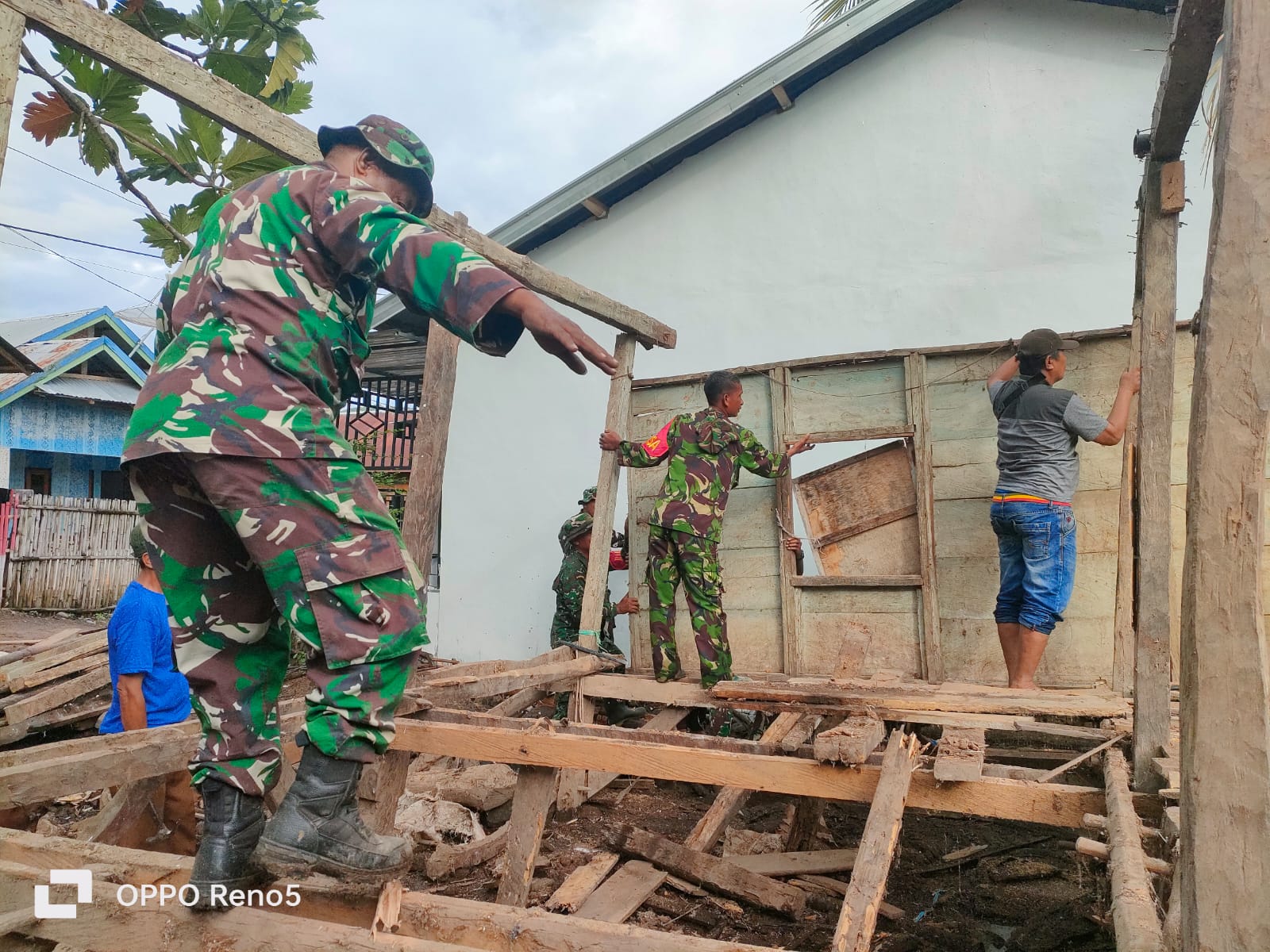Selama kegiatan berlangsung, personel Satgas TMMD Kodim 1608/Bima bersama personel Brigif TP 31/Perisai Sakti tampak bahu membahu bersama warga, bekerja secara gotong royong dalam proses pembongkaran rumah. Kegiatan ini menjadi wujud nyata kemanunggalan TNI dengan rakyat dalam mendukung pembangunan Desa.