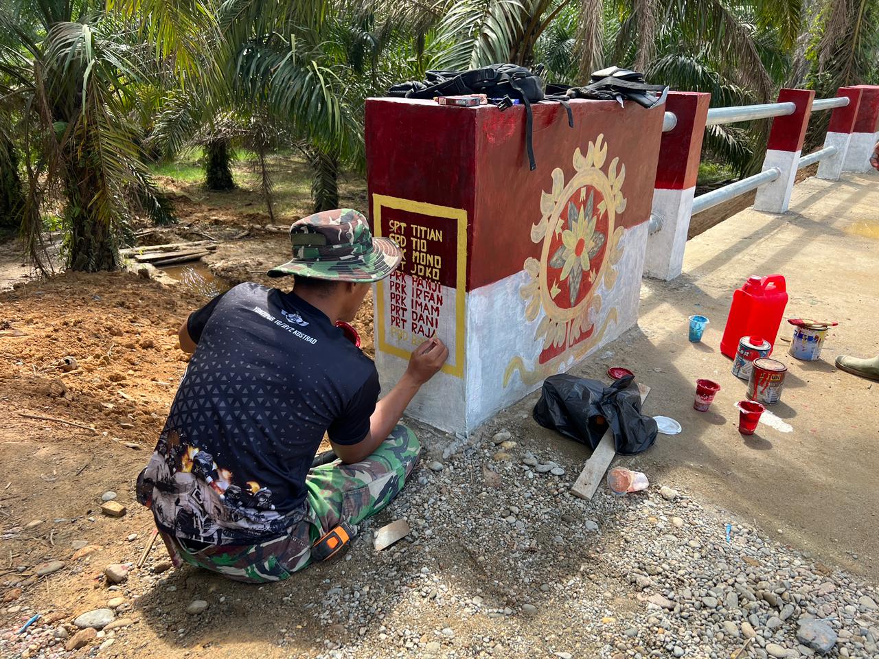 LCN – Aceh Tamiang – Batalyon Zeni Tempur 10/JP/2 Kostrad melaksanakan pengecatan Jembatan Aramco di Desa Blangkandis, Kecamatan Bandar Pusaka, Kabupaten Aceh Tamiang, Senin (23/02/2026).