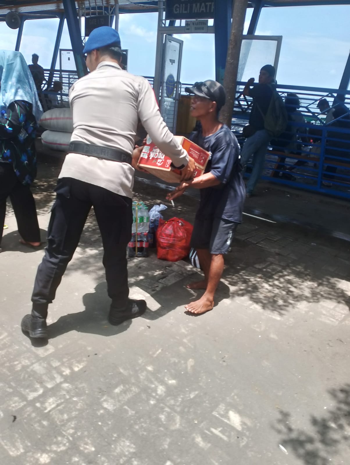 Personel Satuan Polisi Perairan dan Udara (Sat Polairud) Polres Lombok Utara Polda NTB, turun langsung ke tengah keramaian pelabuhan, menjalankan kegiatan yang mereka sebut “Polisi Menolong”.