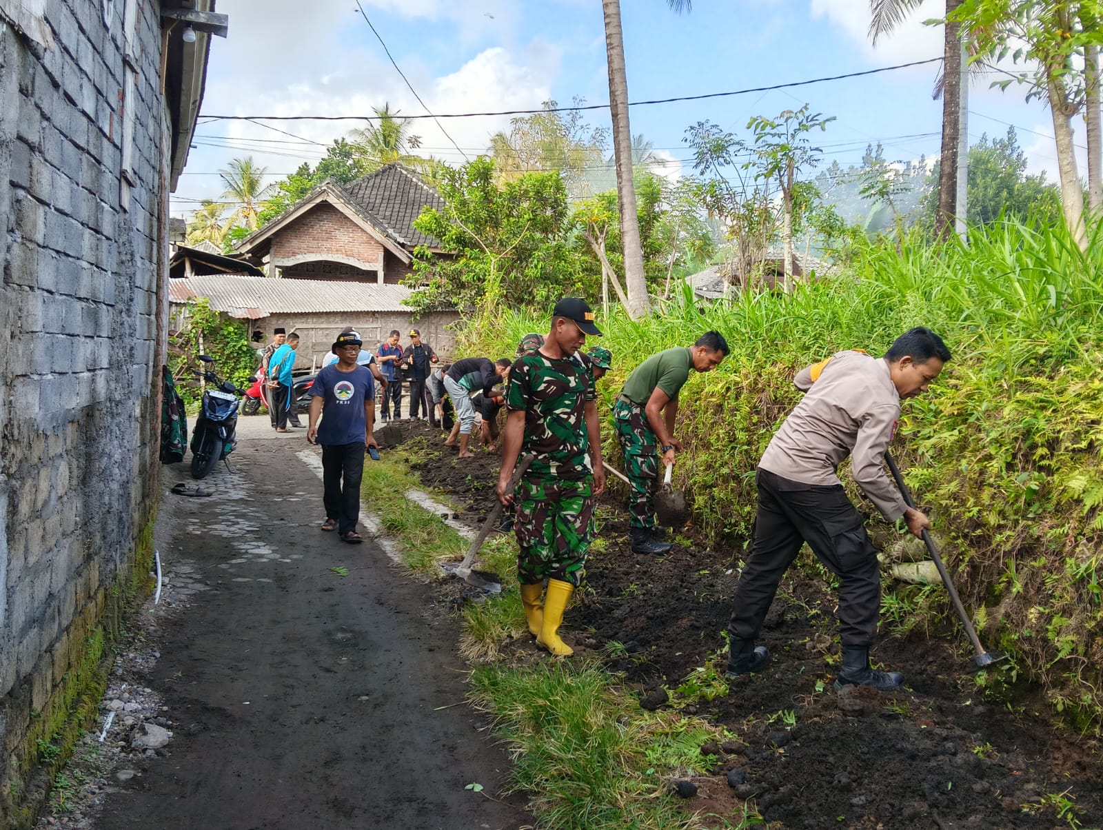 Turut hadir dalam kegiatan tersebut Kepala Desa Aikmel Induk, Bhabinkamtibmas, perangkat desa sebanyak 12 orang, serta sekitar 30 warga Dusun Batu Belek yang bersama-sama bergotong royong dengan semangat kebersamaan. Dari jajaran Koramil 1615-11/Aikmel sendiri, sebanyak 12 personel TNI ikut terjun langsung membantu proses pembersihan dan pembuatan saluran air.