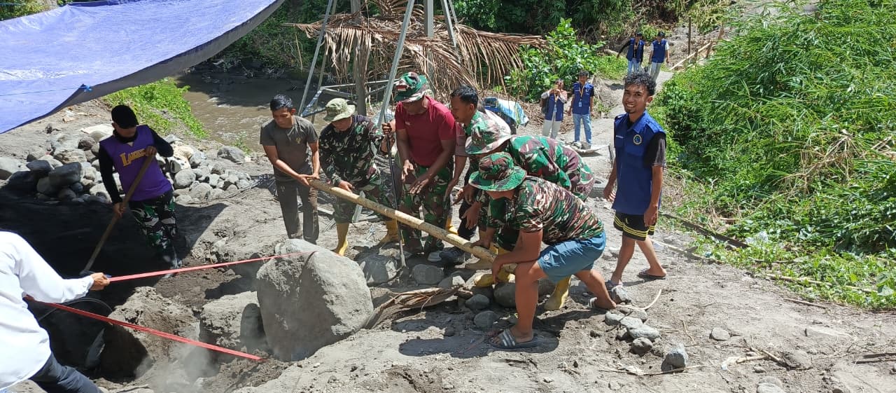 Gotong royong ini dilaksanakan sebagai upaya bersama untuk mempercepat progres pembangunan jembatan gantung yang sangat dibutuhkan oleh warga Dusun Lekok. Di lokasi kegiatan, tampak personel TNI bersama masyarakat bahu-membahu mengangkut material batu, menggali pondasi, serta menyiapkan struktur penyangga jembatan dimedan yang cukup terjal dan menantang.