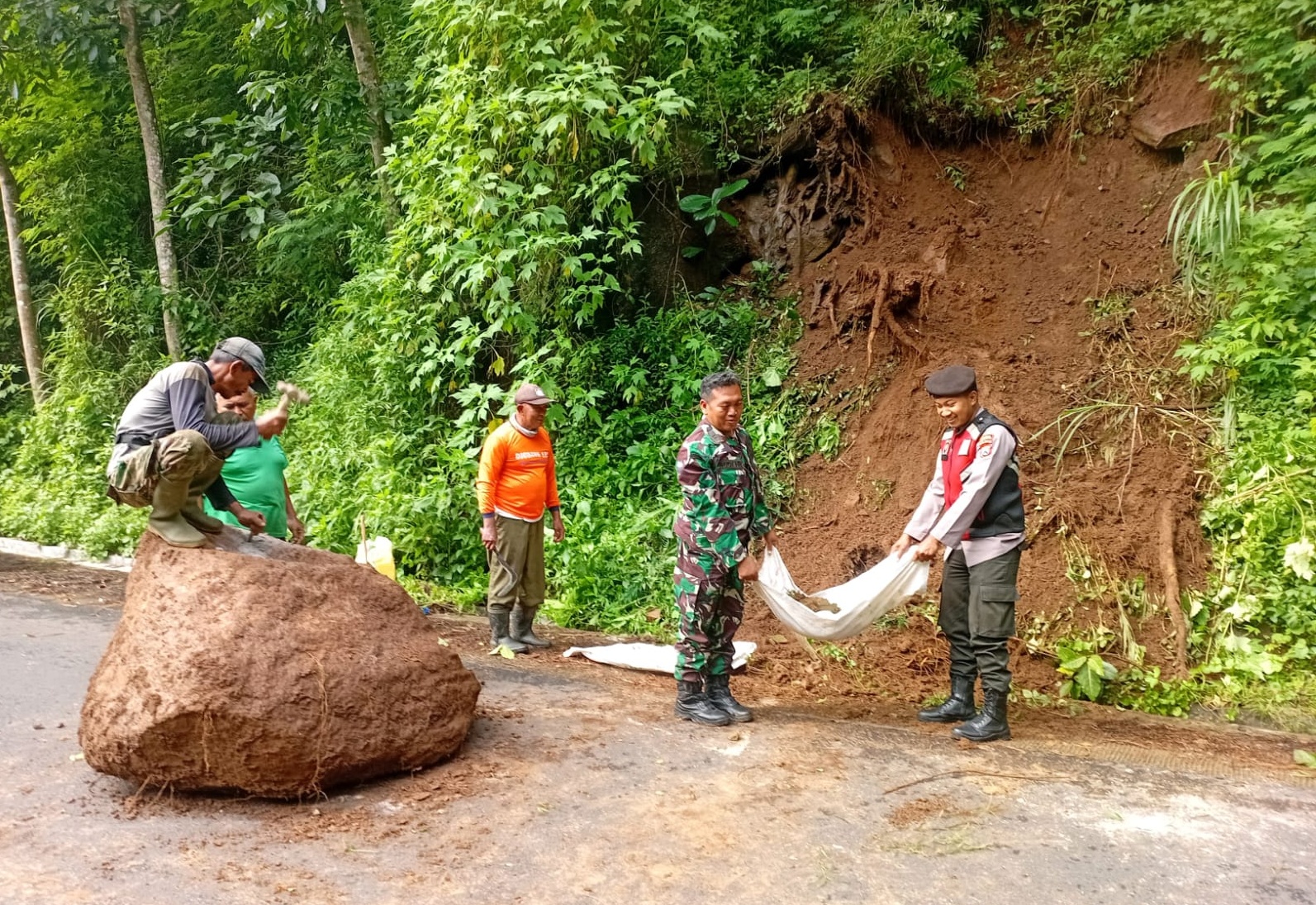 Tanah longsor yang terjadi menyebabkan material tanah, batu, dan ranting pohon menutup sebagian akses jalan. Menyikapi kondisi tersebut, Babinsa bersama aparat terkait dan masyarakat bergerak cepat melaksanakan kerja bakti guna membersihkan material longsor agar aktivitas warga dapat kembali normal serta mencegah terjadinya dampak lanjutan.