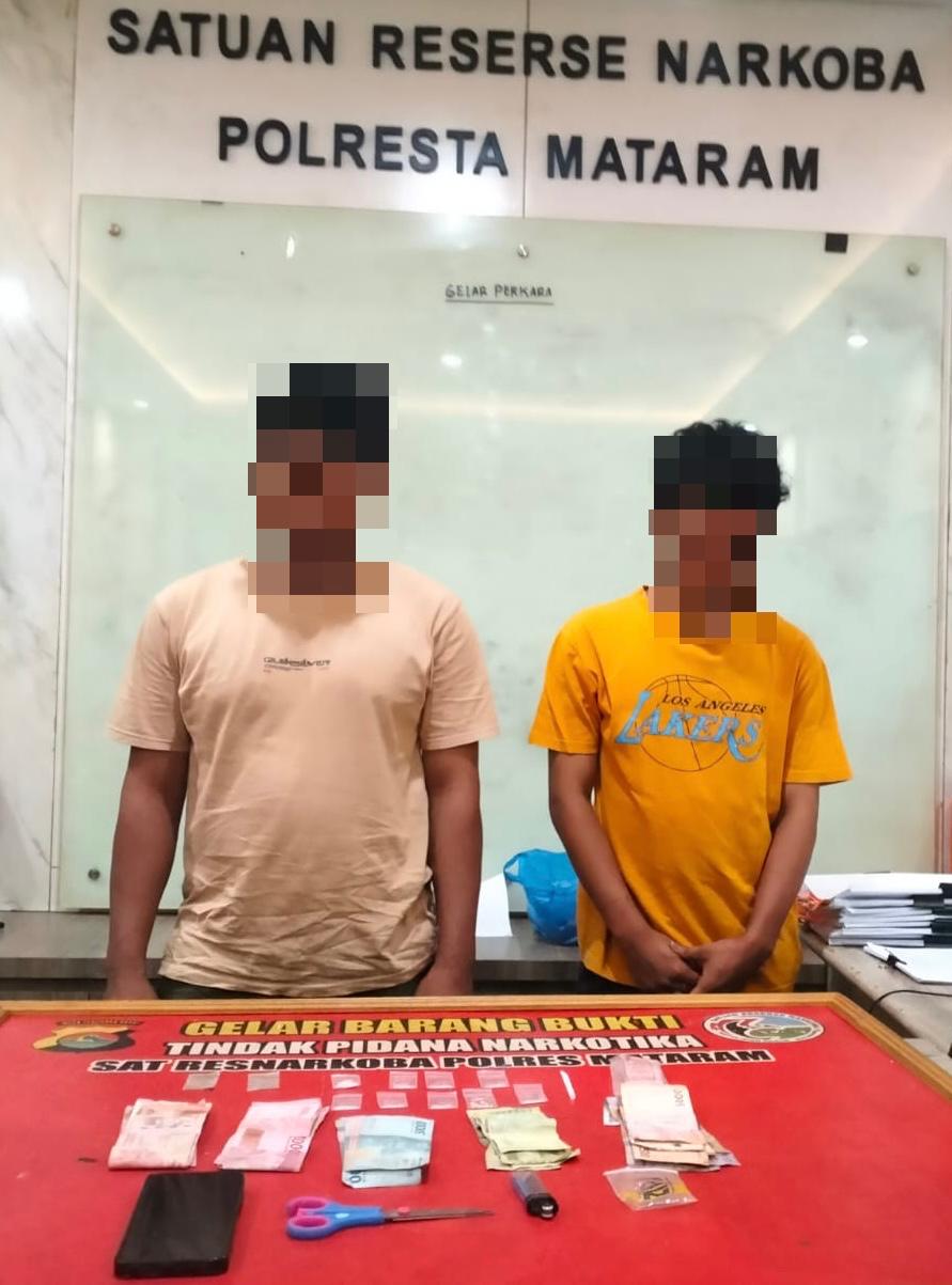 Dua pelaku berinisial M (25) dan HS (26), keduanya warga Karang Bagu, Kecamatan Cakranegara, Kota Mataram, ditangkap dalam penggerebekan yang dilakukan sekitar pukul 19.30 Wita.