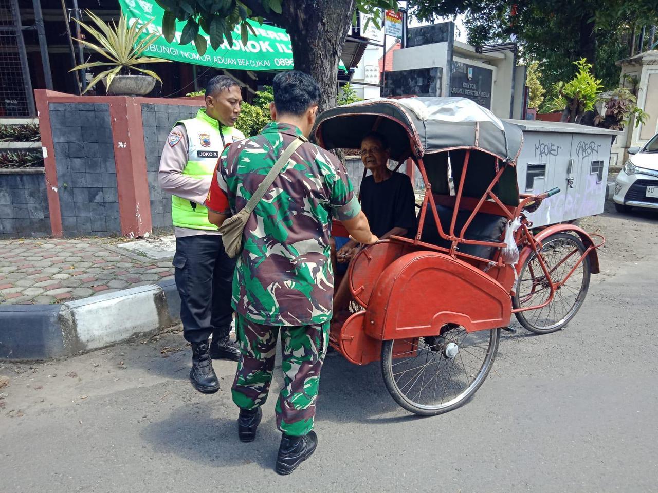 Home / Berita TNI / Tak Kenal Kasta, Silaturahmi Babinsa Kepatihan Wetan Menyasar Tukang Becak, Ingatkan Selalu Berhati-hati Saat Bawa Penumpang