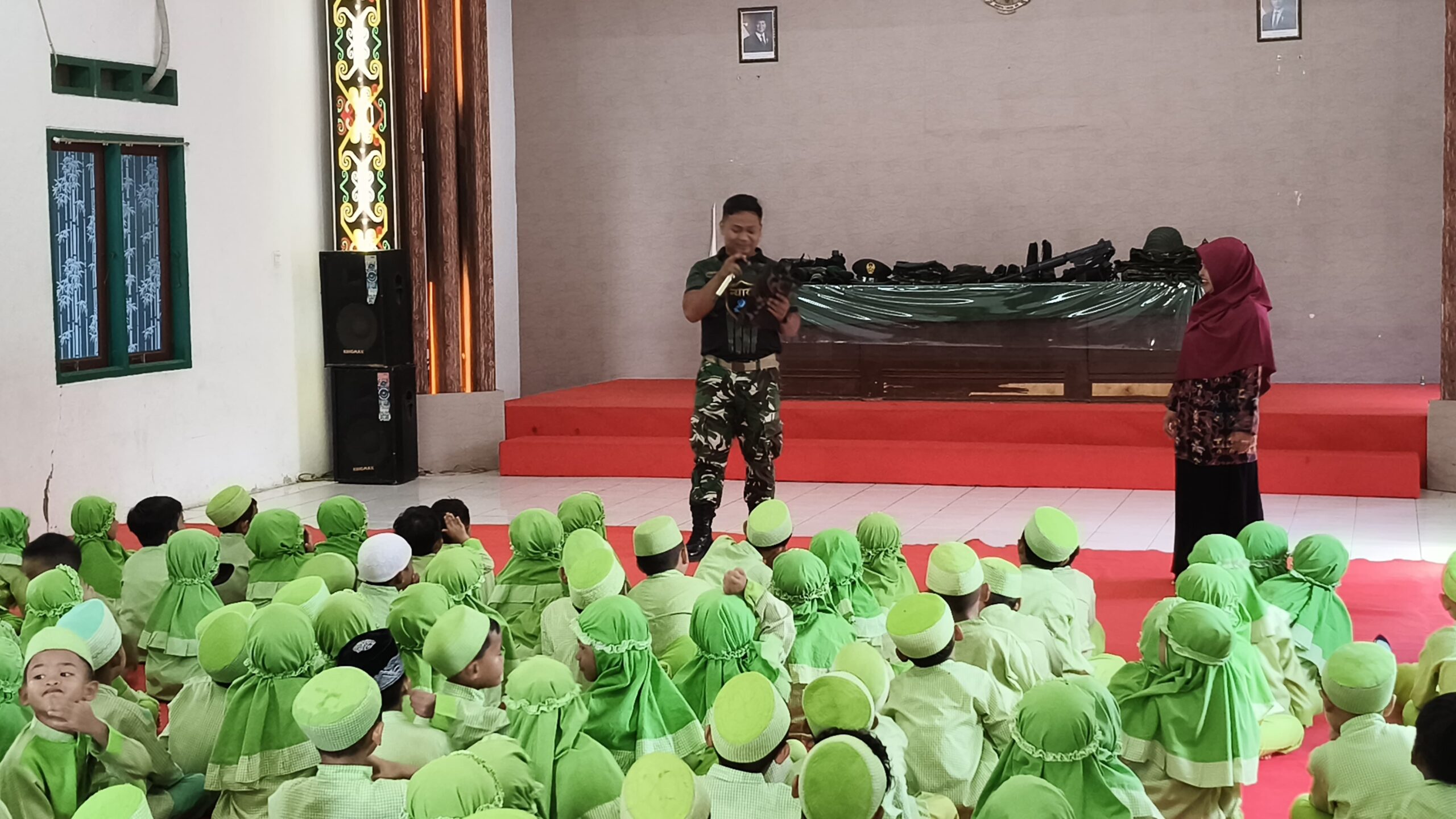 Selain itu, kegiatan juga diisi dengan pengenalan baris-berbaris sederhana dan sesi tanya jawab ringan yang dikemas secara menarik dan menyenangkan, sehingga mudah dipahami oleh anak-anak usia dini.