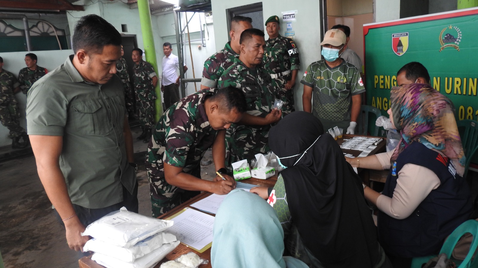 Pengecekan urine dilakukan oleh Staf Intel Kodim 0819 Pasuruan bekerjasama dengan BNN Kabupaten Pasuruan dan Polkesdim, seusai acara sosialisasi Pencegahan, Pemberantasan, Penyalahgunaan dan Peredaran Gelap Narkoba (P4GN).