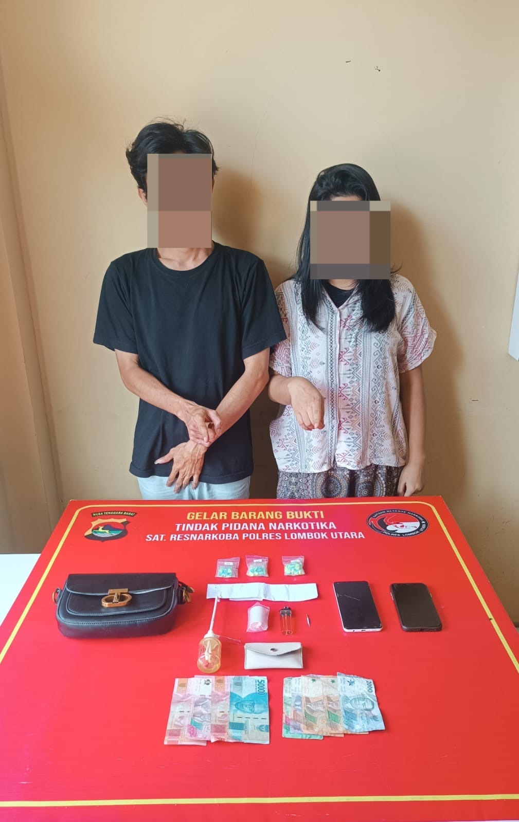 ED (29) dan NA (22) tak berkutik saat Tim Opsnal Satuan Reserse Narkoba menggerebek kamar homestay yang mereka jadikan markas transaksi di Dusun Gili Trawangan, Senin malam (06/10/2025).
