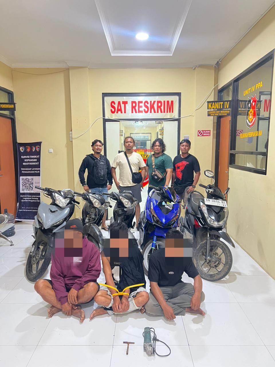 Pengungkapan semakin berkembang saat Team Puma berhasil menangkap tersangka J (alias D) pada Sabtu (3/1/2026) pukul 01.00 WITA. Dari tangan J, polisi menyita dua unit Yamaha Jupiter Z yang nomor rangka dan mesinnya telah digosok menggunakan gerinda.
