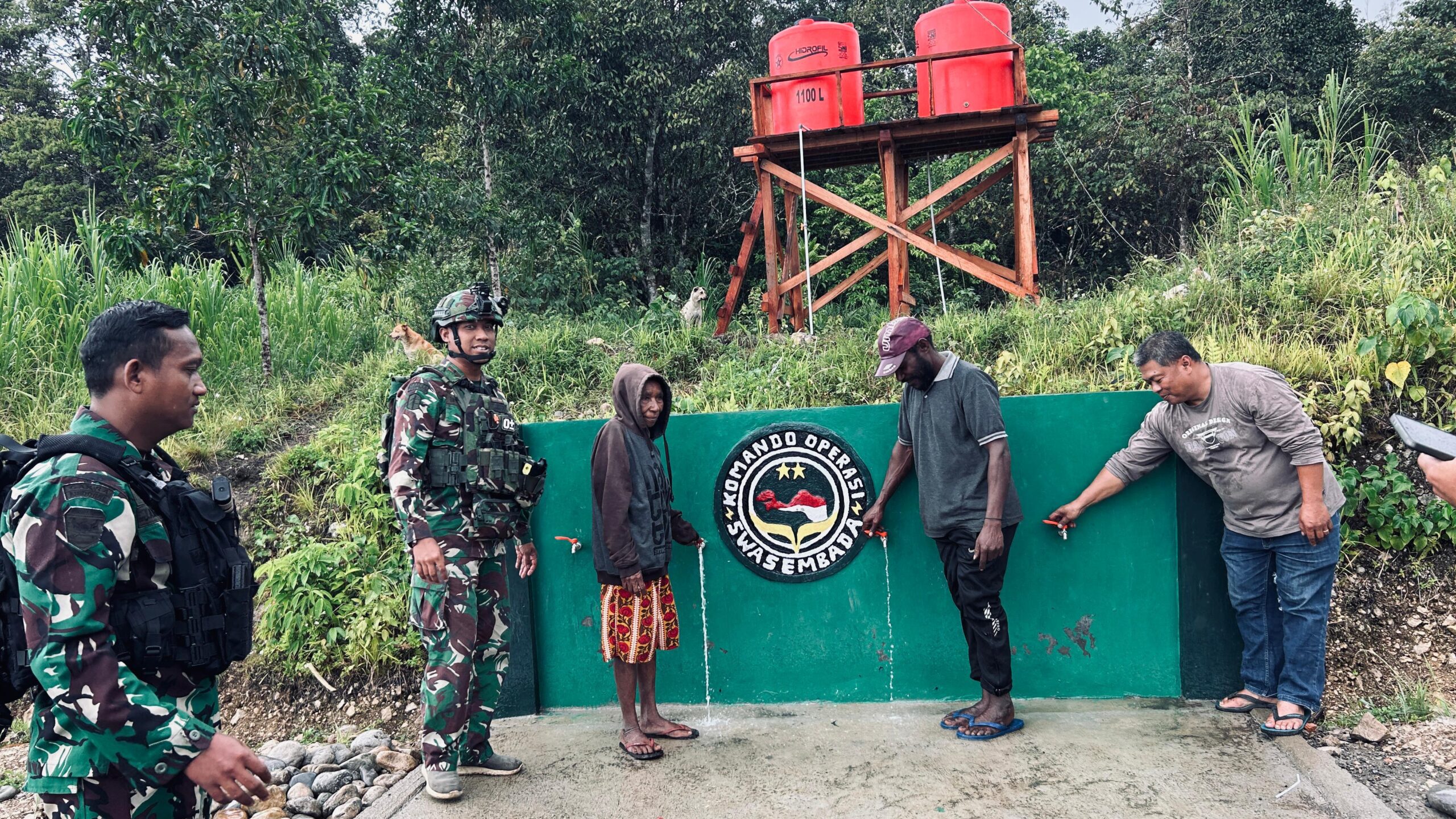 LCN – Kampung Kutdol, Pegunungan Bintang, TNI melalui Program TNI Manunggal Air membangun dan menyerahkan penampungan air bersih bagi warga Kampung Kutdol, sebagai solusi keterbatasan akses air terutama pada musim kemarau. Program ini menyasar kampung-kampung disekitar Pos Okpol yang kerap terkendala pasokan air, agar kebutuhan harian, mulai dari konsumsi, kebersihan, hingga sanitasi, lebih terjamin, Senin, (24/11/2025).