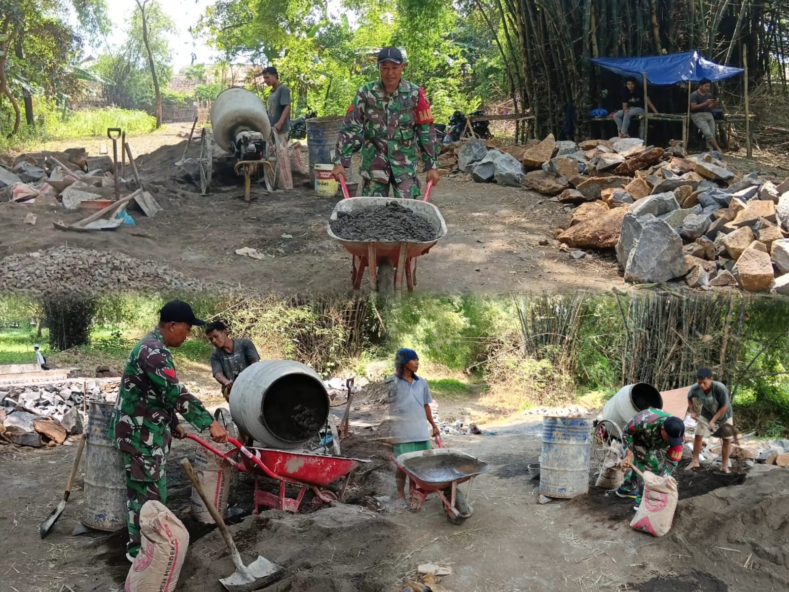 Wujudkan Konektivitas Antar Desa, Babinsa Koramil Lekok Turun Tangan Bantu Progres Pembangunan Jembatan Rowogempol-Branang